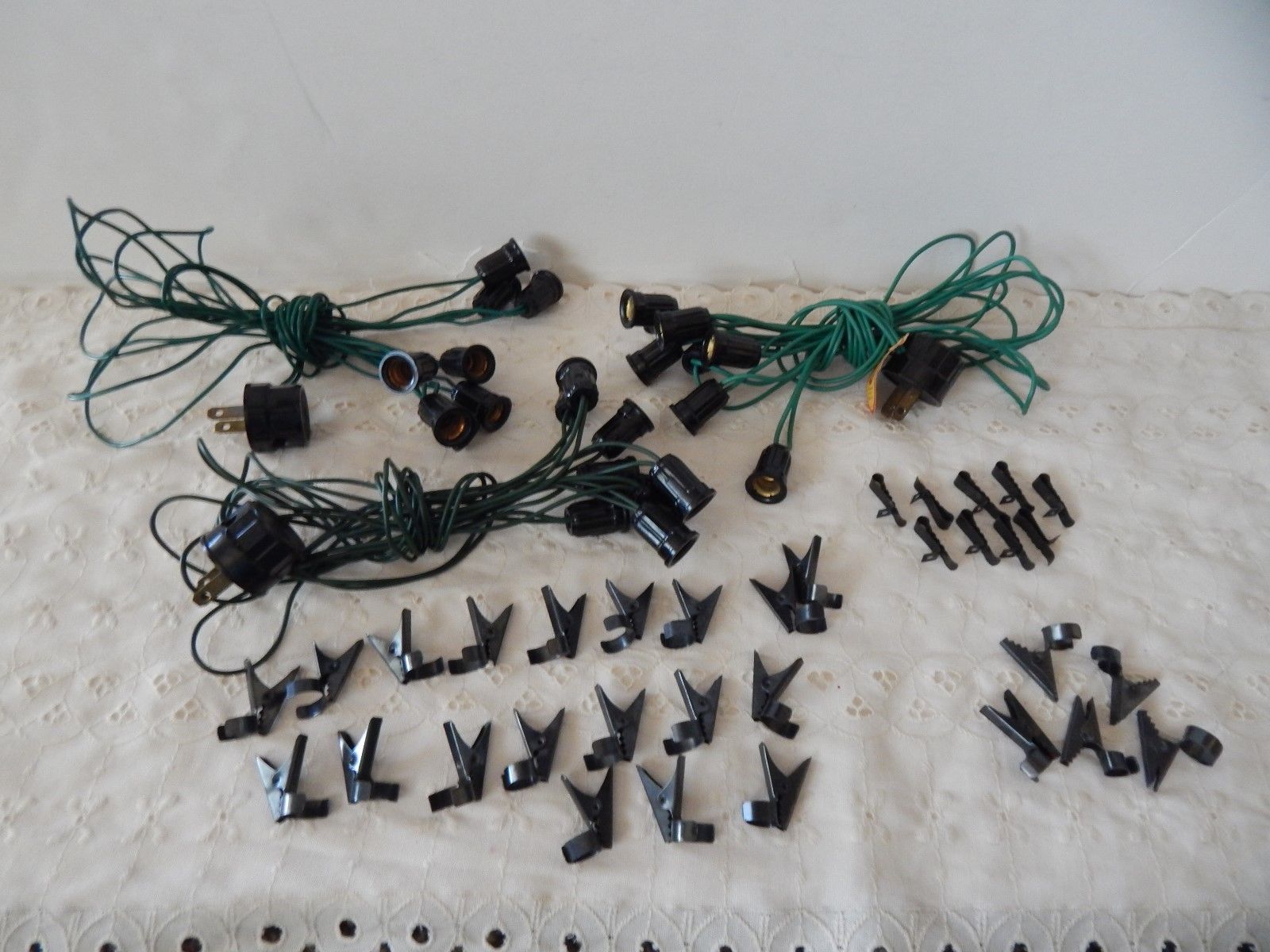 Title (ebay affiliate link): VINTAGE BUBBLE LIGHT ACCESSORIES LOT ALLIGATOR STYLE CLIPS CORDS NOMA GLOLITE