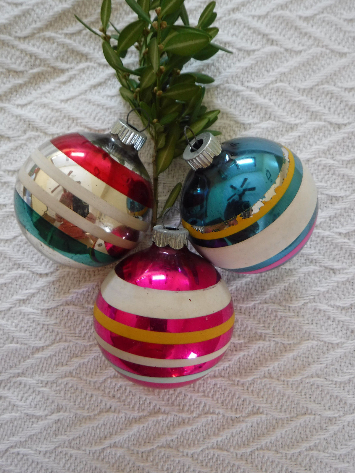 Title (ebay affiliate link): 3 Vintage WWII Era Shiny Brite Mercury Glass Christmas Tree Ornament W/Stripes