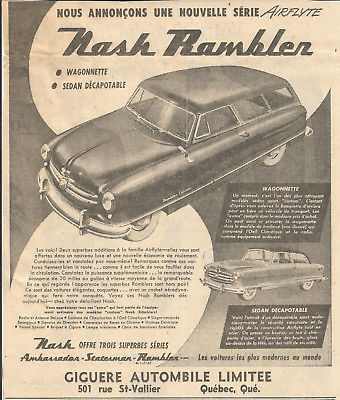 Title (ebay affiliate link): 1951 NASH RAMBLER AUTOMOBILE ORIGINAL AD IN FRENCH