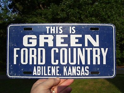 Vintage 60s Ford Country original promo license plate auto parts topper kansas