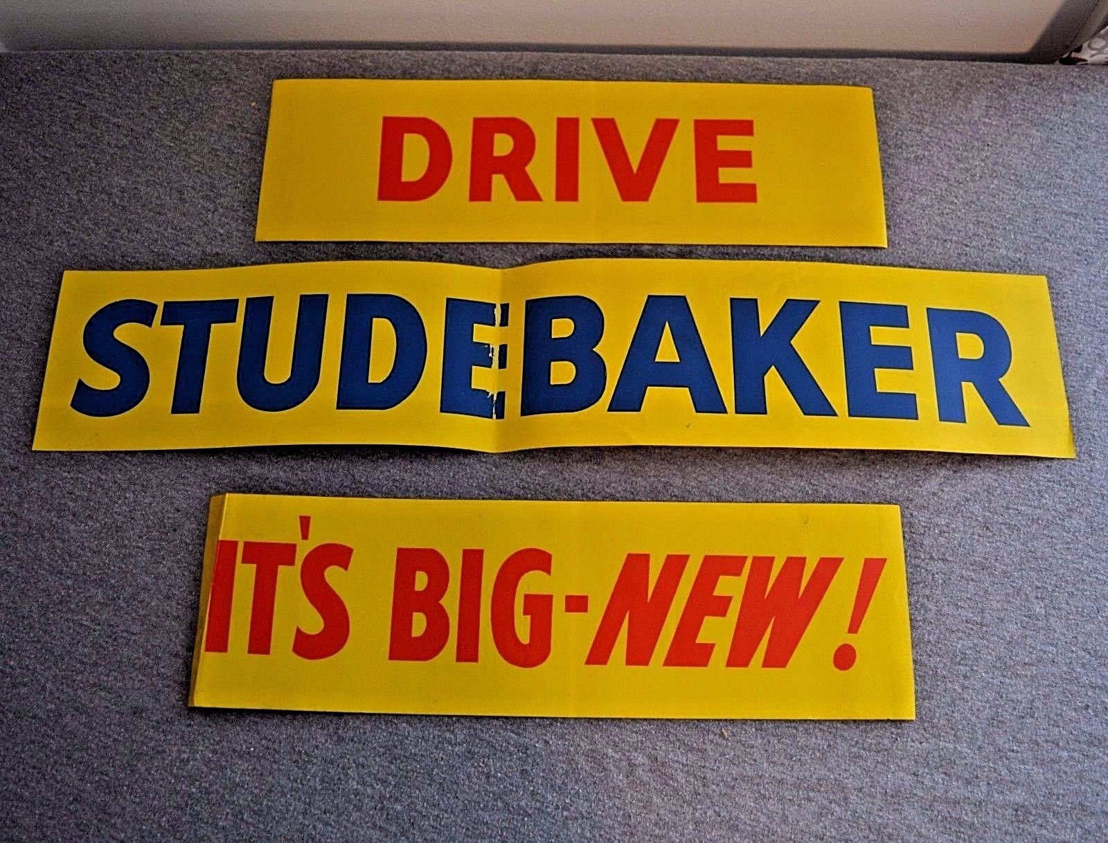 Vintage STUDEBAKER DRIVE IT''S BIG NEW Dealership Car windshield stickers unused