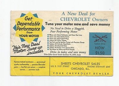 Title (ebay affiliate link): EXTREME ADVERTISING POSTAL CARD: 1933 SHEETS CHEVY SALES, CHICAGO, IL