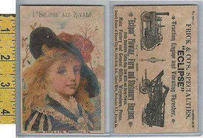 Victorian Card, 1890''s, Eclipse Tractor, Waynesboro PA, Engine, Thresher, Girl
