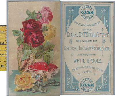 Victorian Card, 1890''s, Clark''s Thread, Pin Cushion, Roses, Scissors