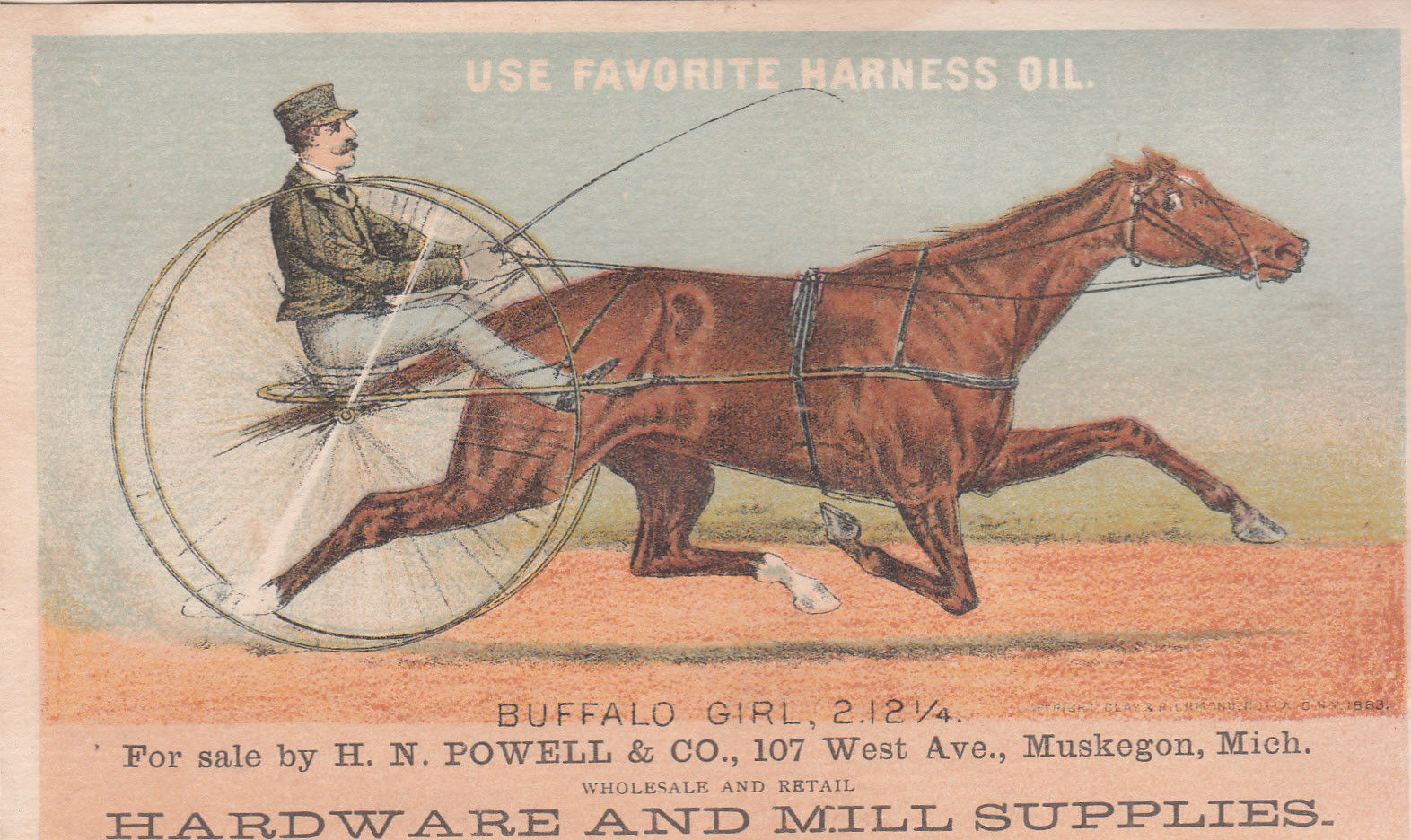 Title (ebay affiliate link): Favorite Harness Oil Rochester NY BUFFALO GIRL Horse HN Powell Hardware Muskegon