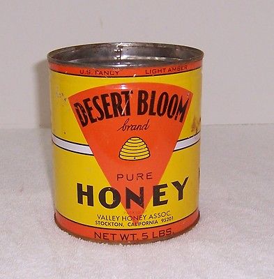 Desert Bloom Brand Pure Honey Tin Can - EMPTY