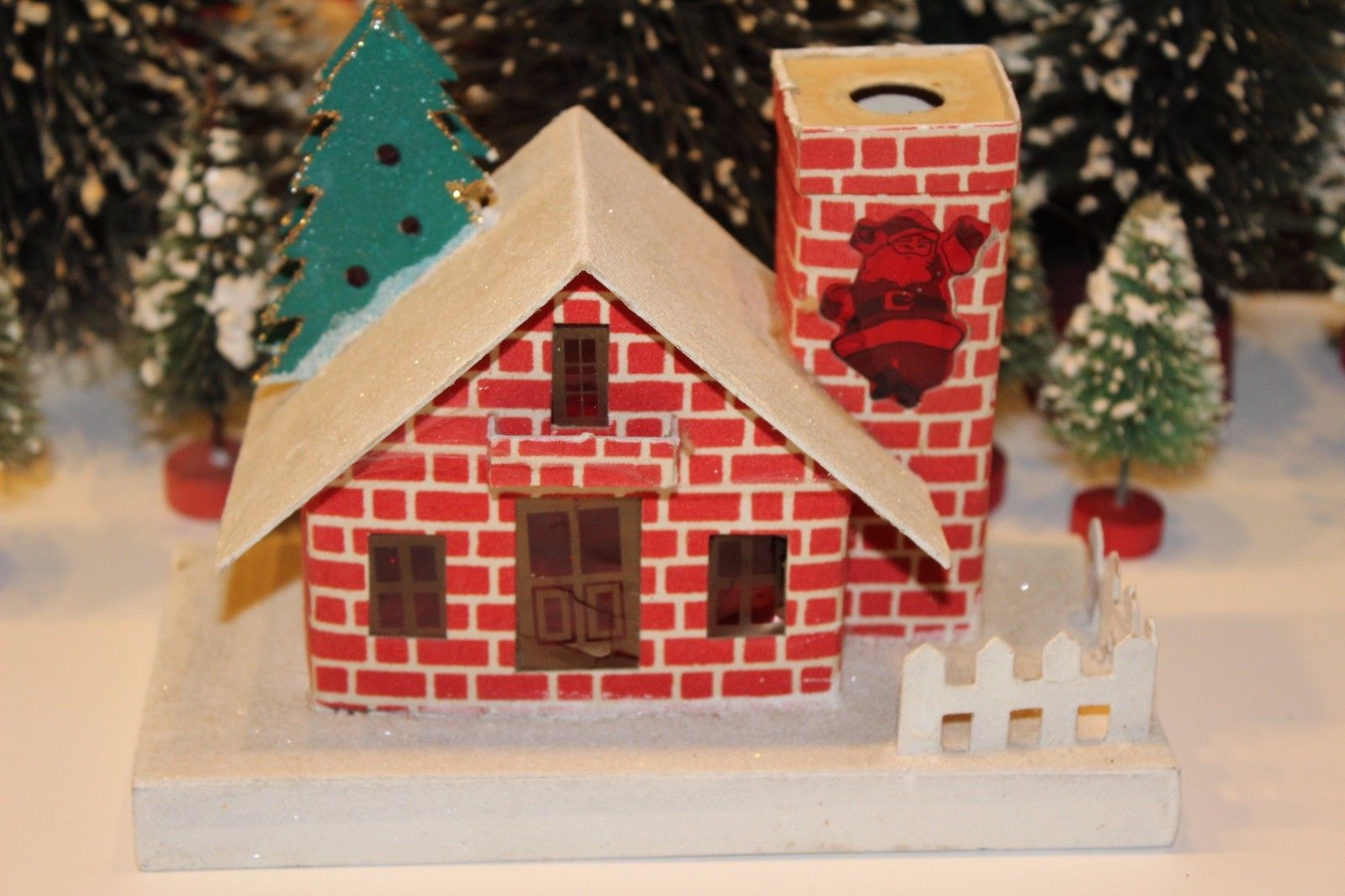 Title (ebay affiliate link): Vtg Cardboard Christmas Putz Mica Brick Santa House