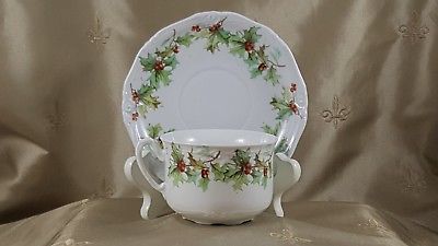 Title (ebay affiliate link): ANTIQUE Holly CUP & SAUCER Porcelain with HOLLY & BERRY Transfer UNMARKED