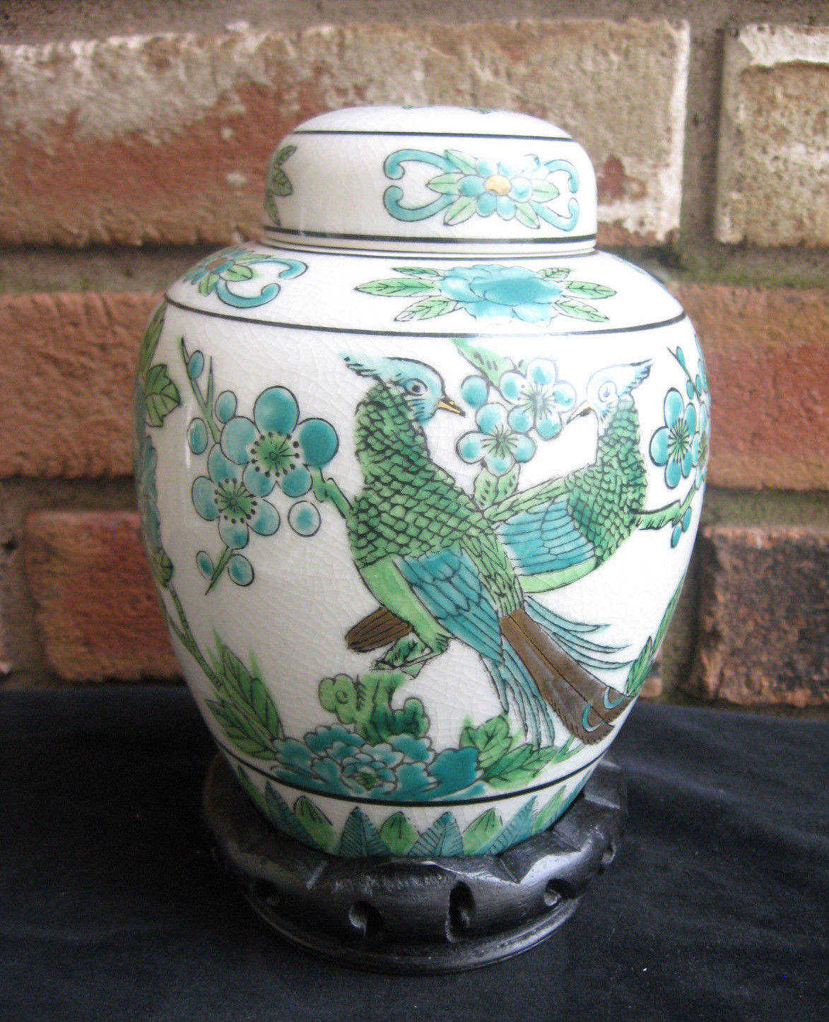 VINTAGE OMC JAPAN DUAL PEACOCK GINGER JAR GOLD BRUSHED NO RESERVE