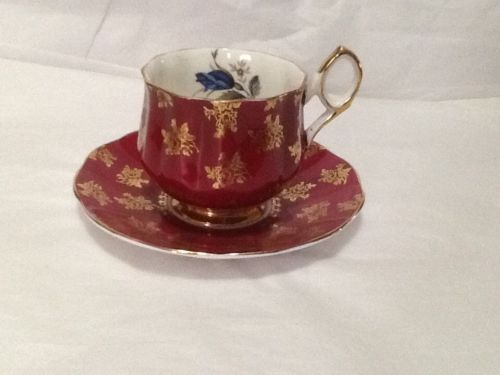 Title (ebay affiliate link): Elizabethan Fine Bone China England Teacup and Saucer Maroon and Gold Blue Rose