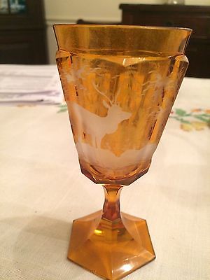 Antique Amber Etched Heavily Patterned Bohemian Glass Goblet