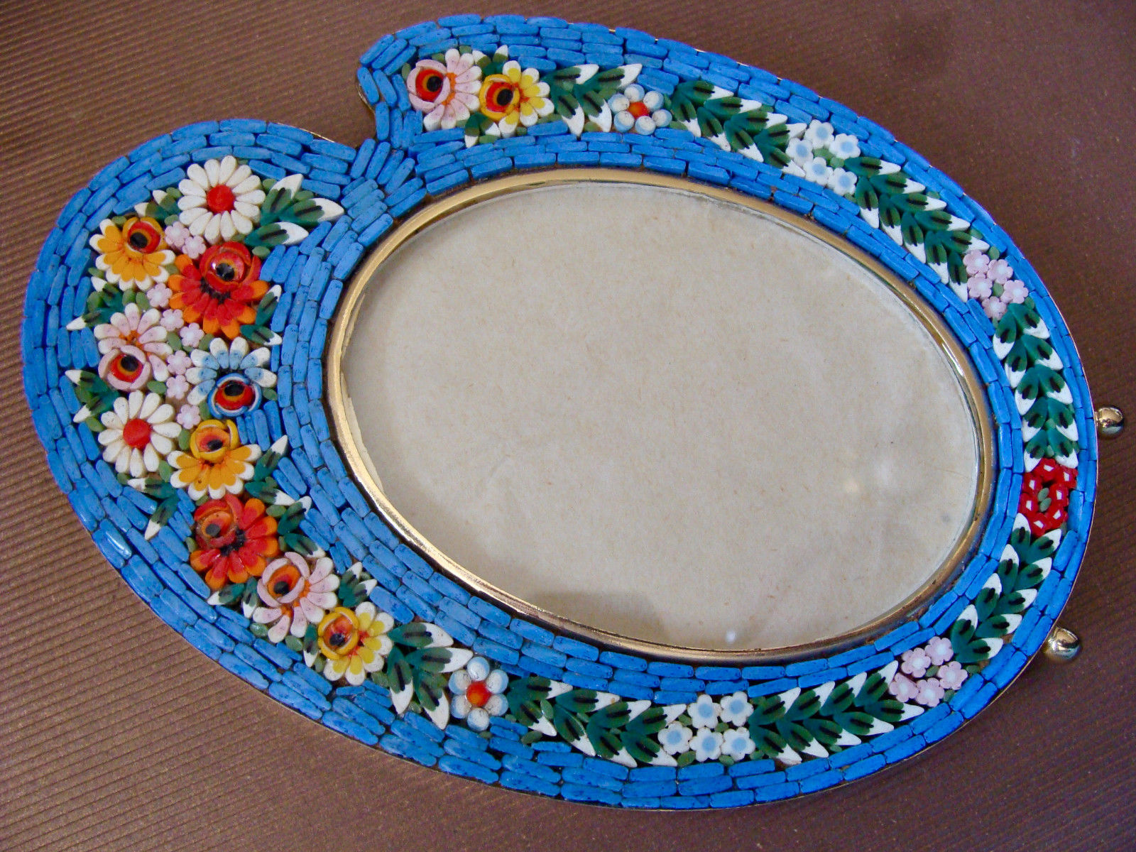 VINTAGE MICRO MOSAIC GOLD PLATE GLASS 5" STANDING FRAME