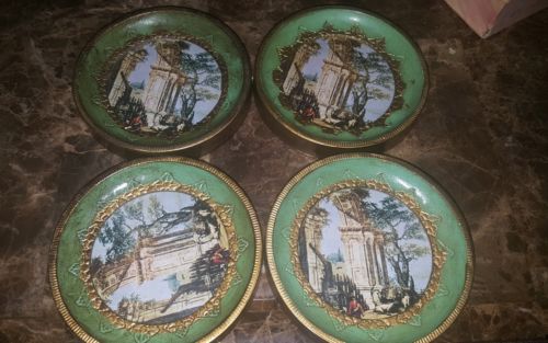 SET 4 FLORENTINE GOLD AND GREEN ROUND PICTURES FRAMES ITALY