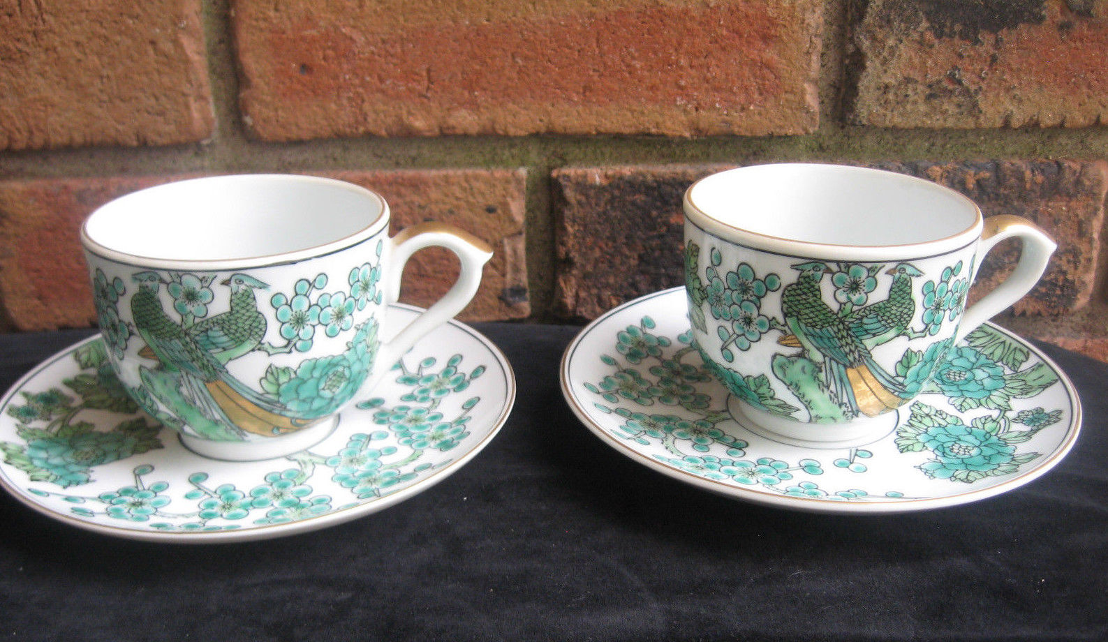 GOLDIMARI HAND PAINTED PEACOCKS TEA CUPS & SAUCERS NO RESERVE