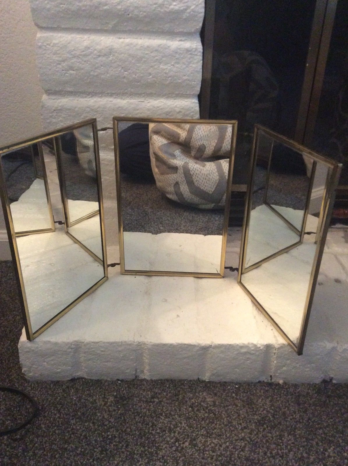 Vintage Gold Tone Tri Fold Mirror