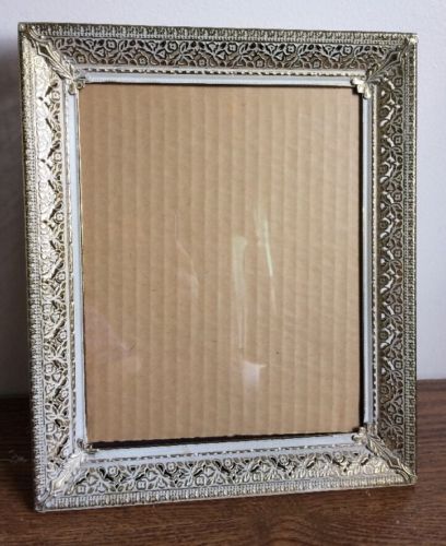 Title (ebay affiliate link): Vintage 8 X 10 Ornate Gold Tone White Wash Filigree Metal Picture Photo Frame