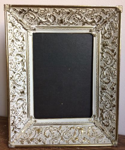 Title (ebay affiliate link): Vintage 5 X 7 Ornate Gold Tone White Wash Filigree Metal Picture Photo Frame