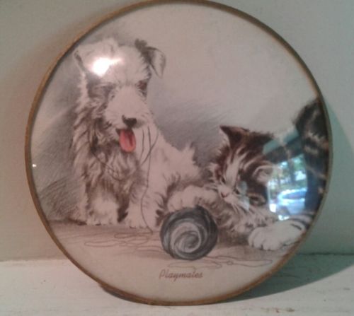 Vintage PLAYMATES Terrier Dog Kitten Bubble Glass Picture Bilderback''s USA