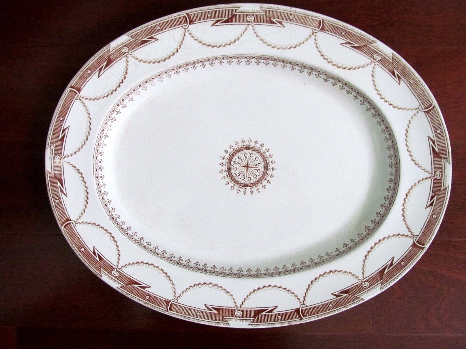 ANTIQUE IRONSTONE PLATTER brown transferware MADE IN ENGLAND X-LARGE