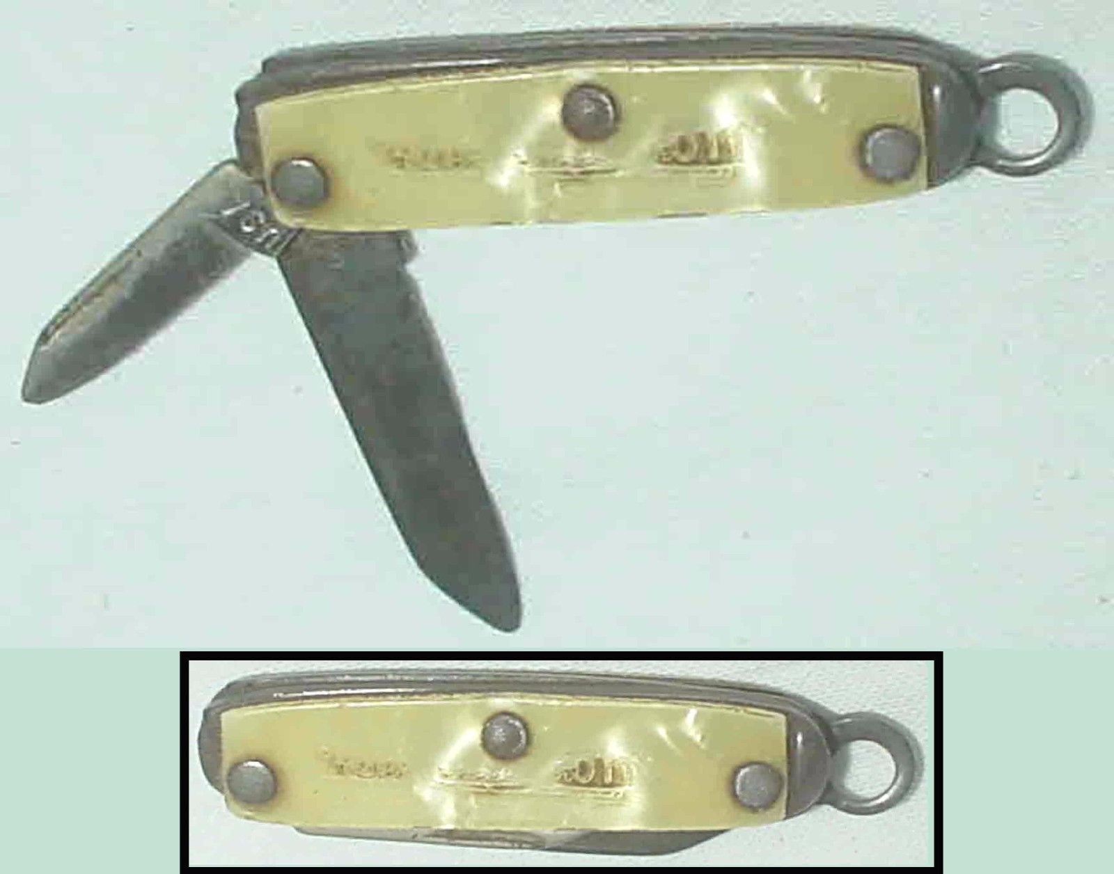 VINTAGE U.S.A. MOTHER OF PEARL TINY KEYCHAIN TWO BLADE POCKET KNIFE