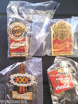 Lot of 4 Vintage Sealed 1990''s Coke Coca Cola Super Bowl Hat / Lapel Pin