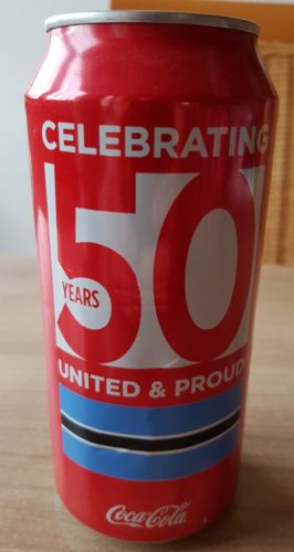 Hard to find coca cola can from botswana . ococ 50 years Promotion