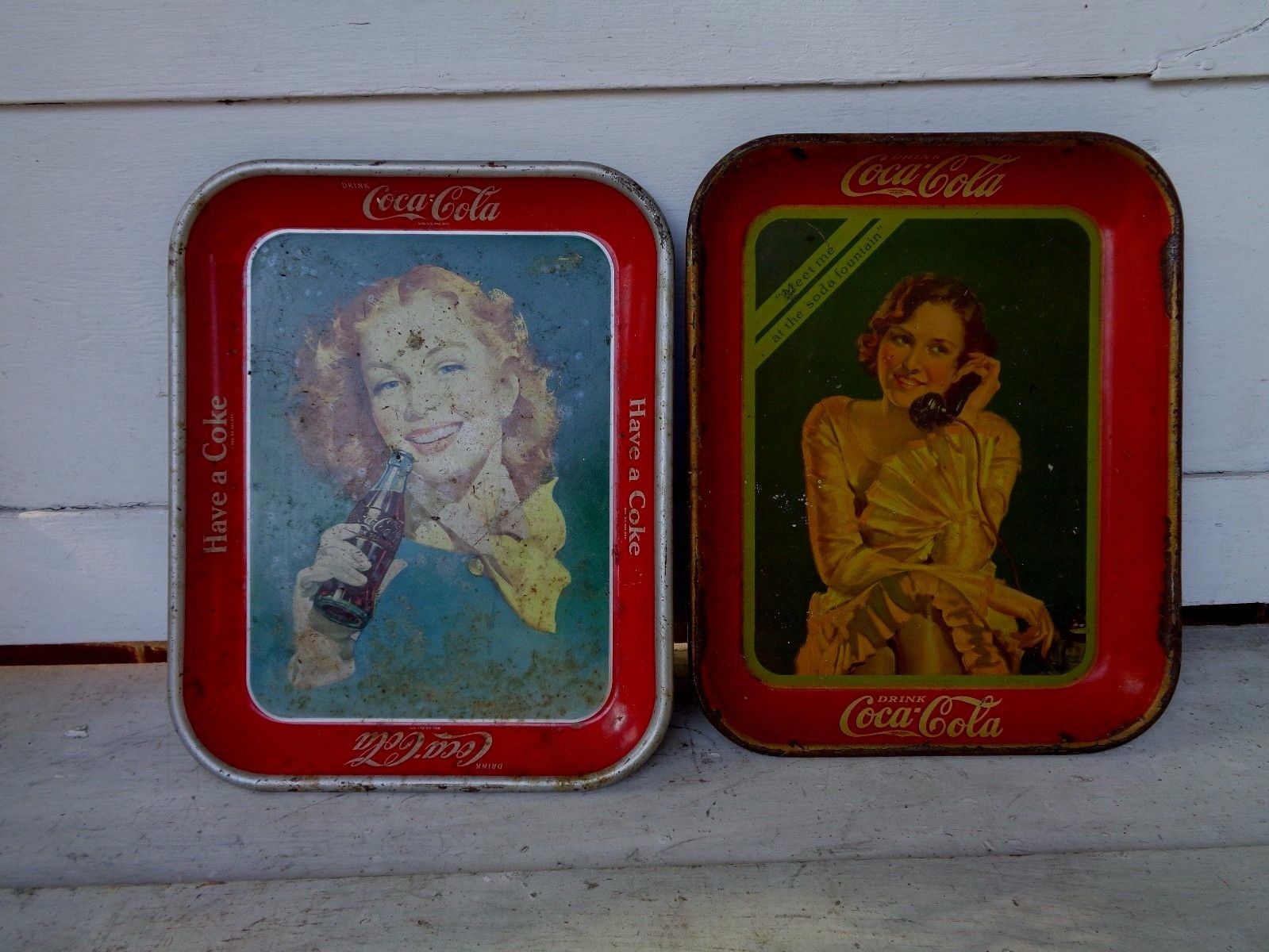 Title (ebay affiliate link): 2 VINTAGE COCA COLA SODA TRAYS TRAY SIGN 1930 BOTTLE COKE BEVERAGE SERVING