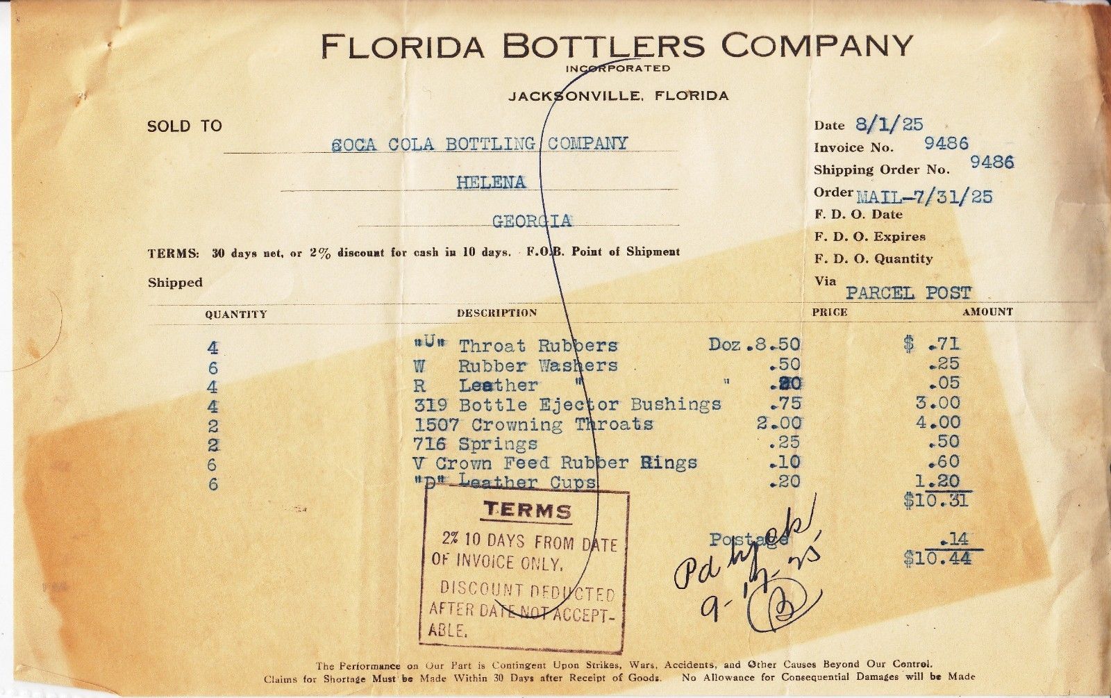Title (ebay affiliate link): FLORIDA BOTTLERS COMPANY INVOICE JACKSONVILLE FLORIDA DATED 8/1/25