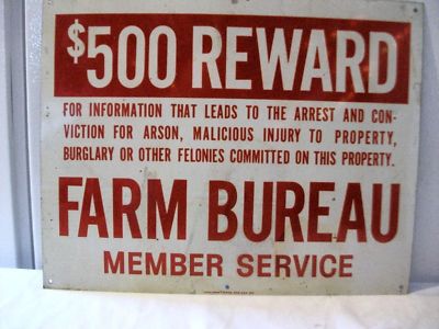 Farm Bureau $500 Reward Member Service Metal Sign