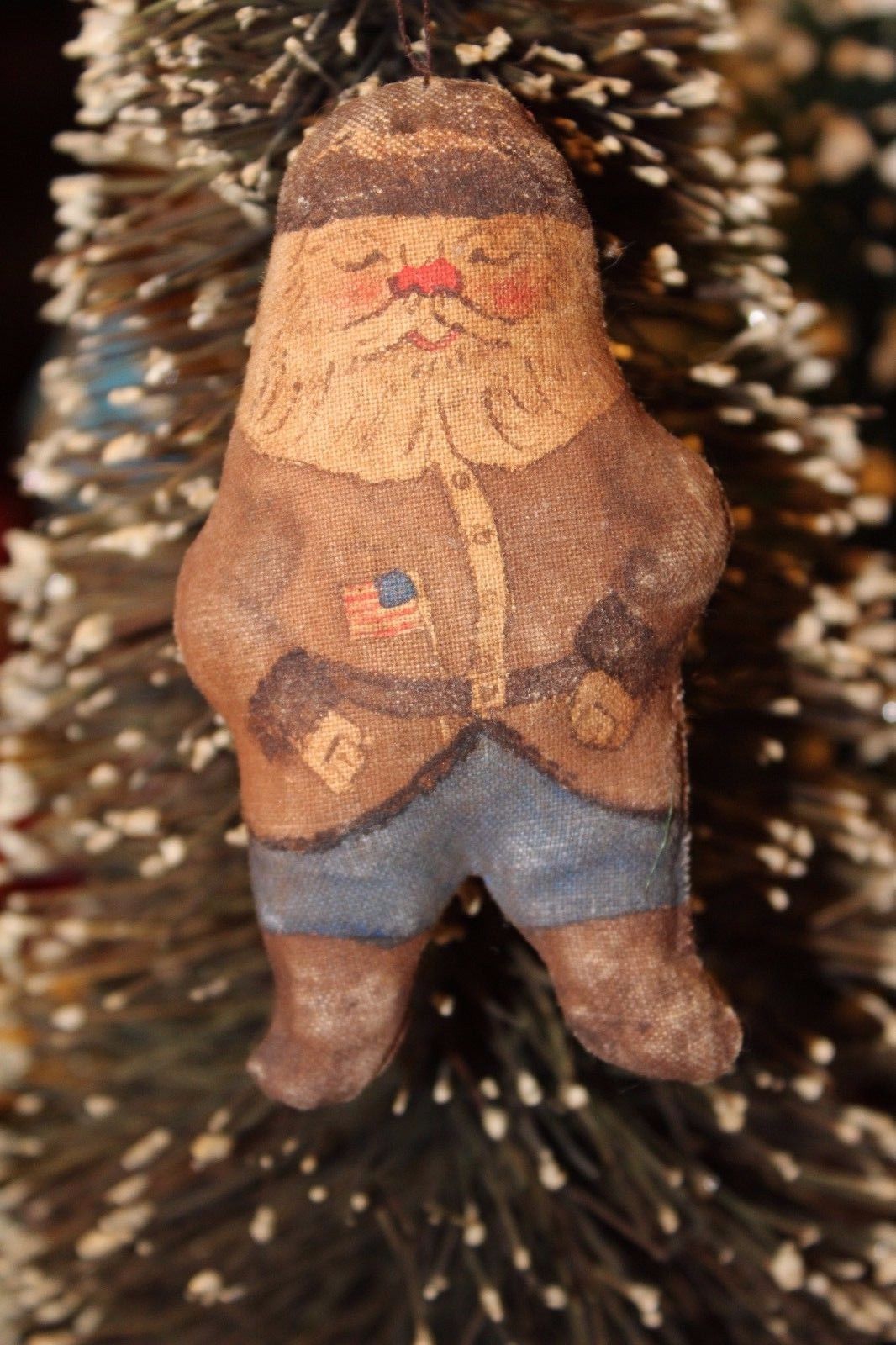 Title (ebay affiliate link): Vintage Cloth Santa Christmas Ornament with American Flag Folk Art