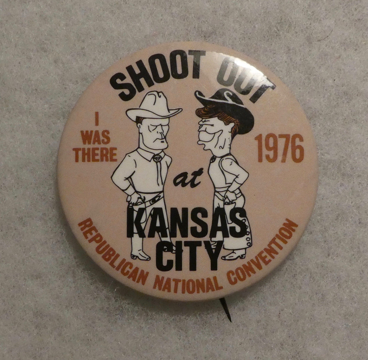 Title (ebay affiliate link): VINTAGE 1976 "I WAS THERE AT SHOOT OUT AT KANSAS CITY" FORD VS REAGAN BUTTON