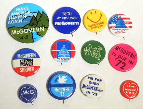Title (ebay affiliate link): M683 Vintage Lot of GEORGE McGOVERN Shriver Slogan Logo Campaign Buttons (1972)`
