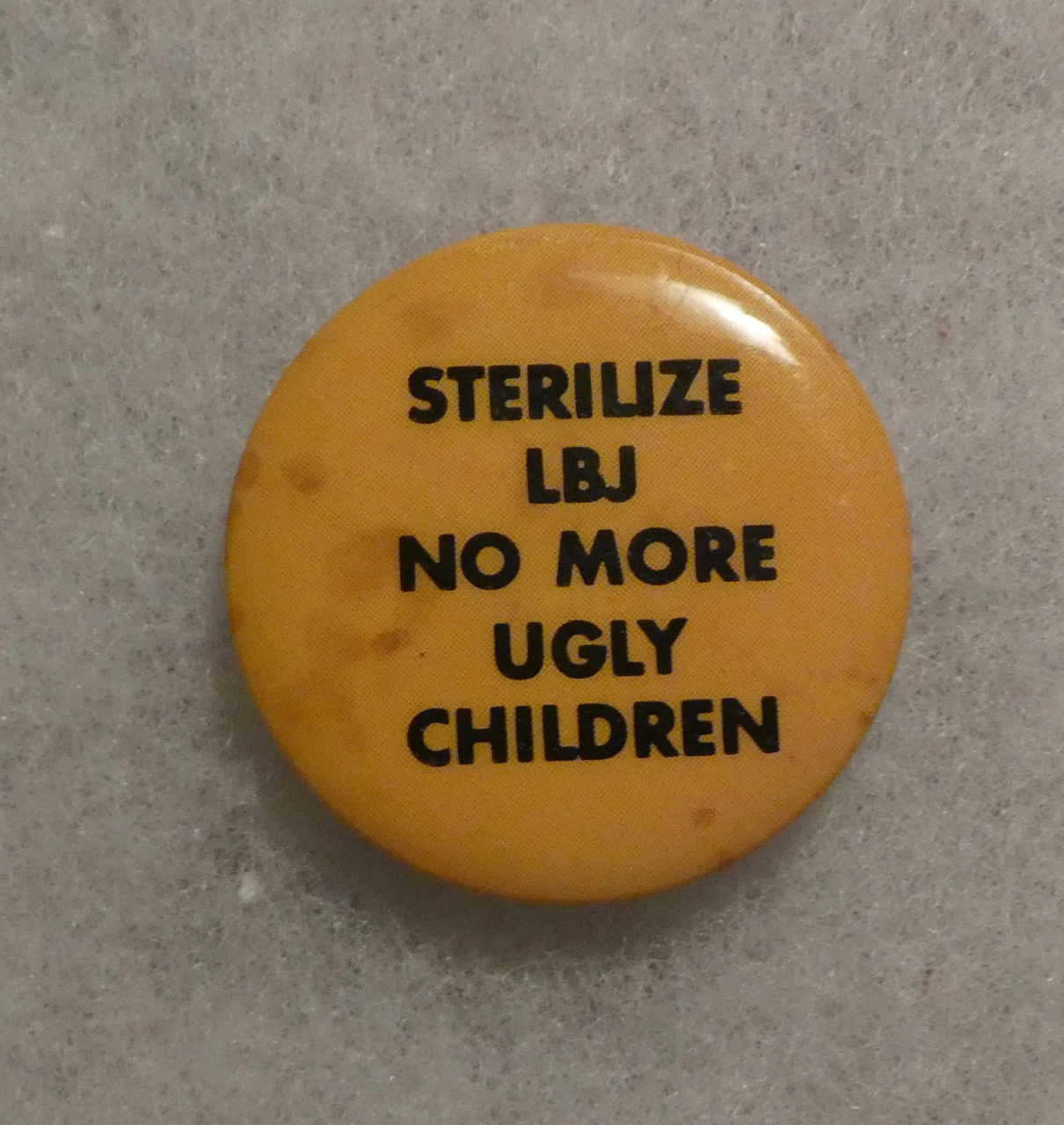 Title (ebay affiliate link): VINTAGE 1968 ANTI-JOHNSON "STERILIZE LBJ NO MORE UGLY CHILDREN" BUTTON