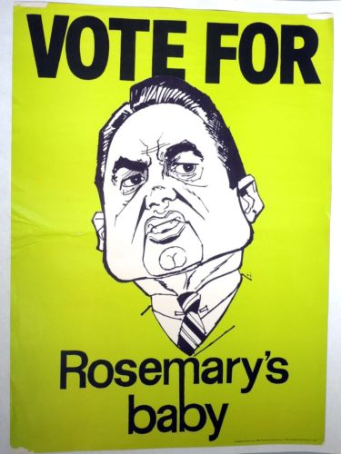 M745. Vintage Anti GEORGE WALLACE Vote For Rosemary''s Baby Poster (1968) }
