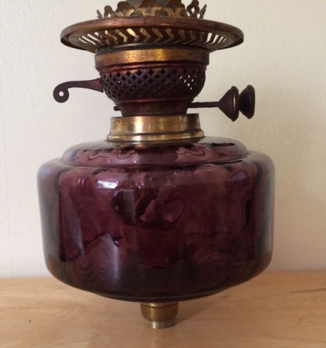 Title (ebay affiliate link): VINTAGE AMETHYST GLASS OIL LAMP FONT WITH DUPLEX BURNER