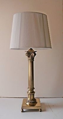 Title (ebay affiliate link): Vtg Heavy Brass Corinthian Column Oil Table Desk Lamp Light 42cm/16.5" Tall Old
