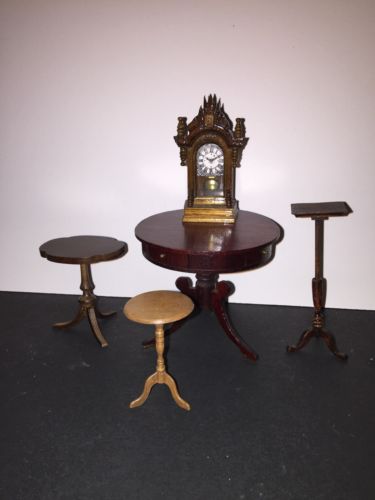 Title (ebay affiliate link): Collectible Vintage wood Tables Clock Doll House Furniture Lot