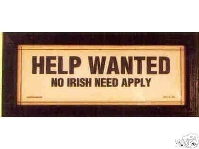 HELP WANTED NO IRISH NEED APPLY 1915 sign