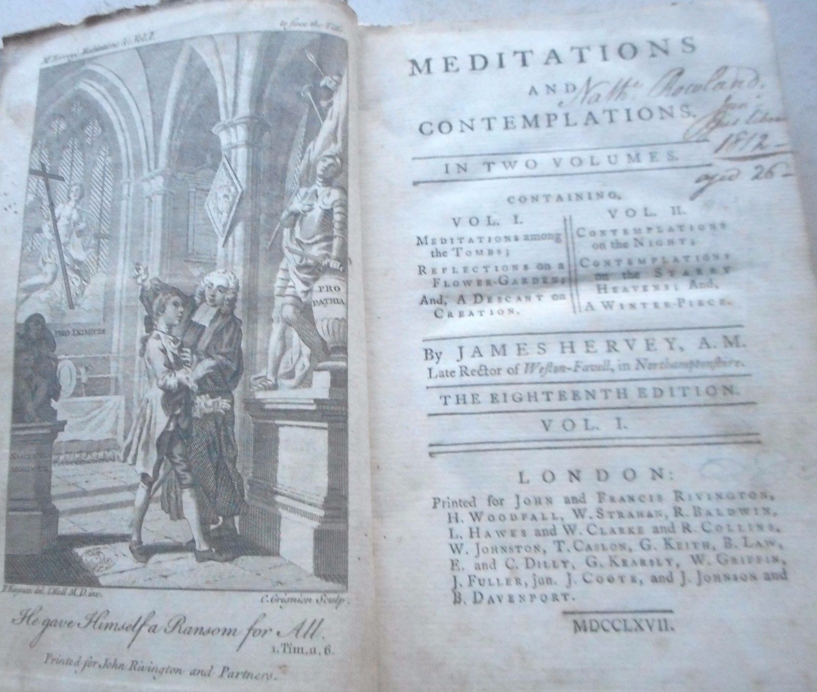 Title (ebay affiliate link): 1767 MEDITATIONS AND CONTEMPLATIONS VOLUME ONE ONLY - JAMES HERVEY LEATHER BOUN