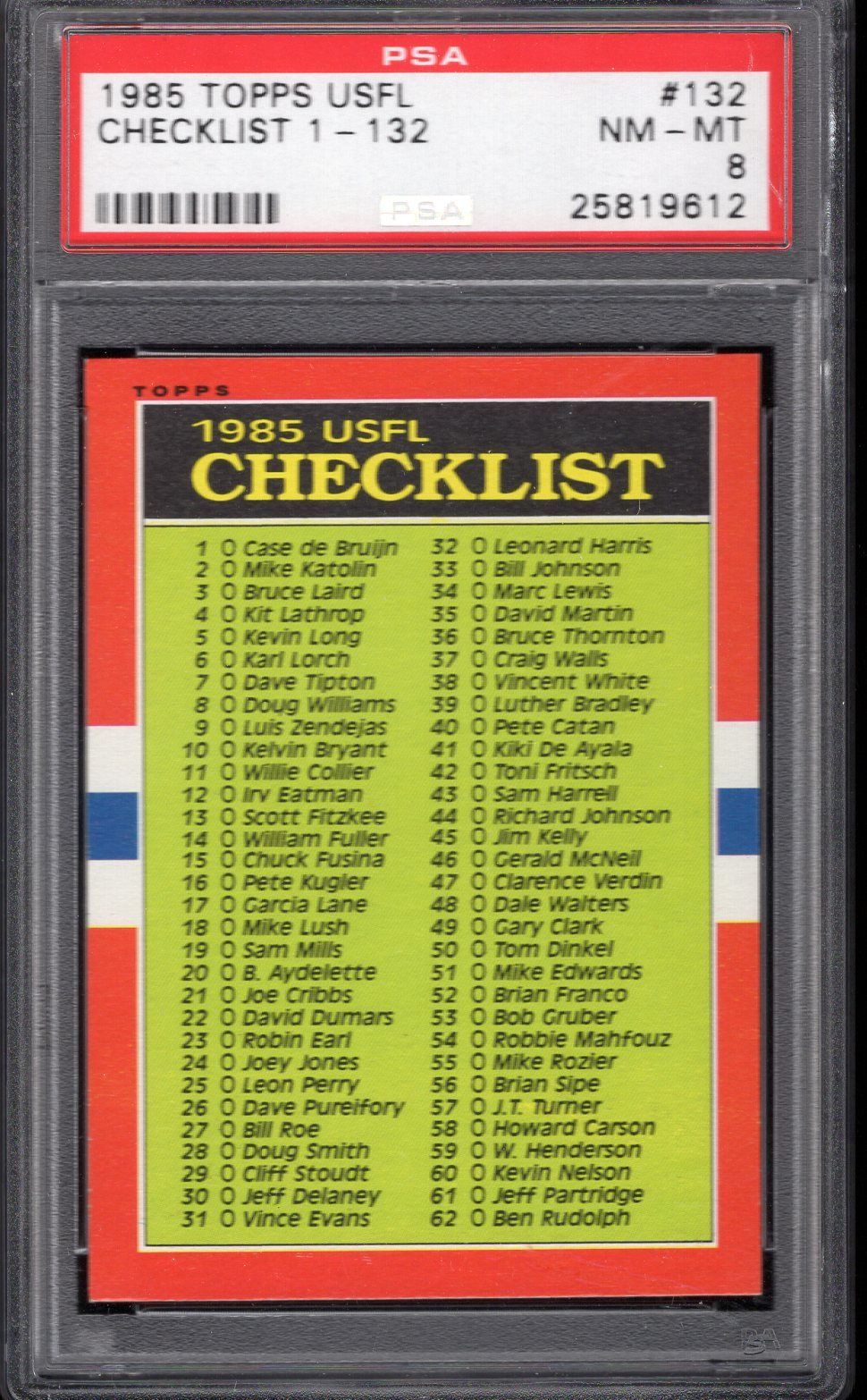 1985 Topps USFL #132 Checklist 1-132 PSA 8 NM-MT