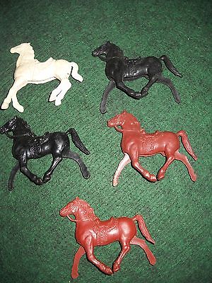 Vintage to plastic horses x 5 black, brown, white lot. LOOK''''