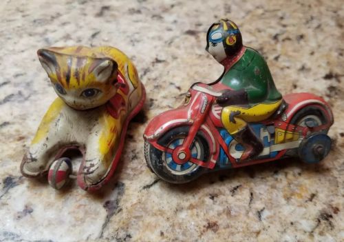 Line Mar Vintage Motorcycle and Cat Car Japan Tin RARE