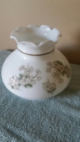 Title (ebay affiliate link): vtg milk glass shade globe GWTW floral blossoms white trim 7" fitter 6" tall