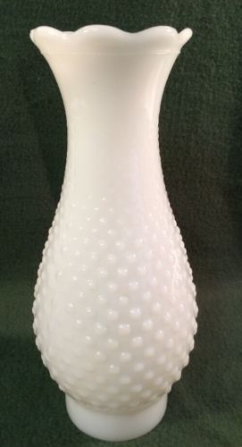 Title (ebay affiliate link): RUFFLE TOP WHITE MILK GLASS HOBNAIL CHIMNEY HURRICANE LAMP SHADE 10" VERY GOOD