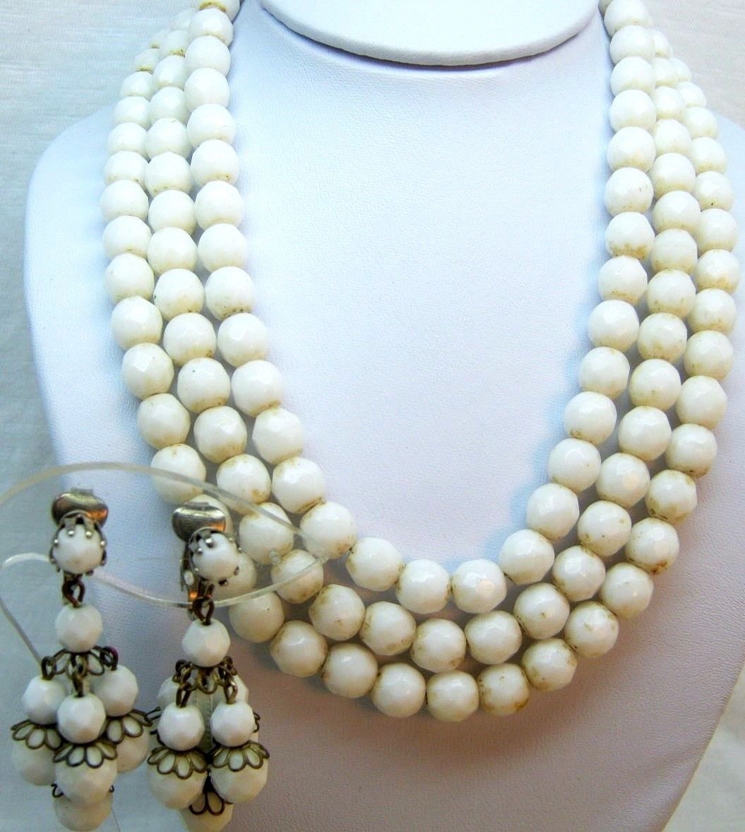 Title (ebay affiliate link): NECKLACE EARRINGS 1940s MILK GLASS Vintage Fashion Style Statement Retro Quirky