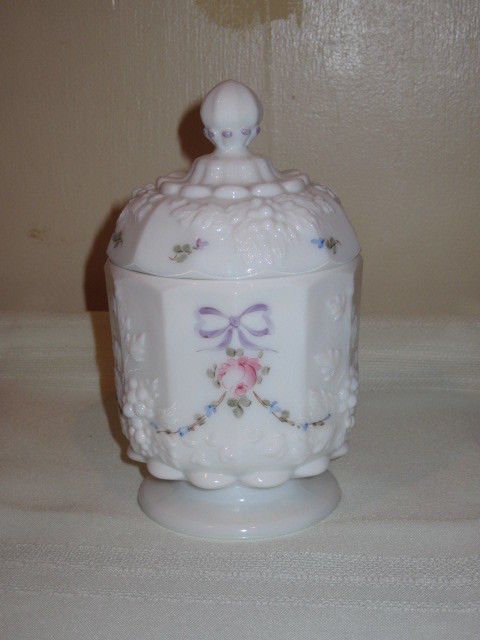 WESTMORELAND ROSES AND BOWS MILK GLASS CANDY DISH