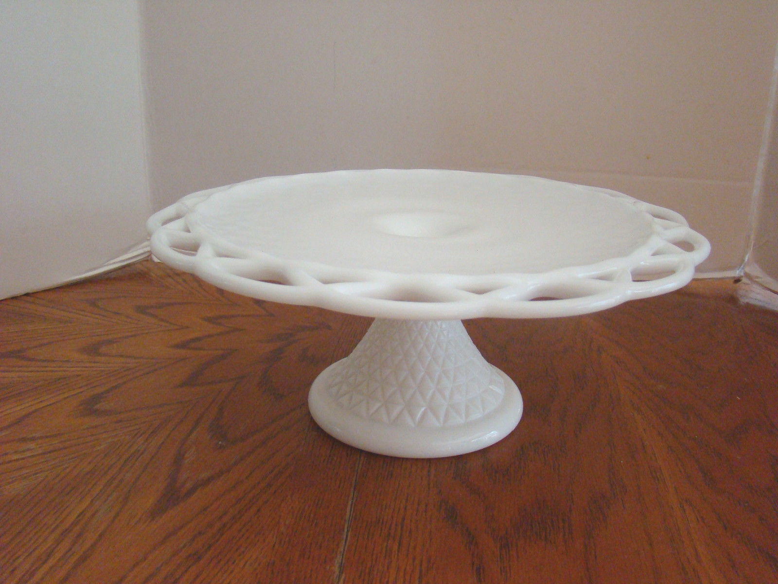 Title (ebay affiliate link): Vintage Large White Milk Glass Open Lace Pedestal Cake Plate Stand
