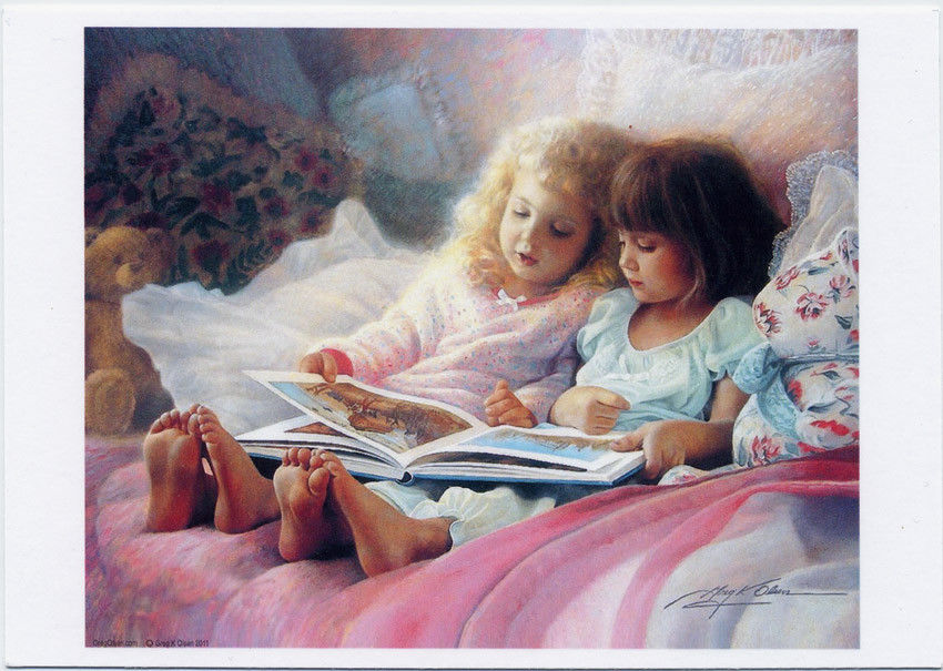ART Kids Child Children Two Little Girls is Reading Book Rare Modern Postcard #2