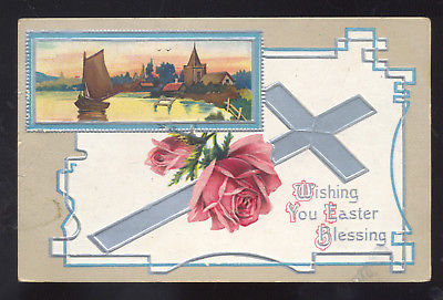 Title (ebay affiliate link): WISHING YOU EASTER BLESSING PINK ROSES CROSS POSTCARD TAYLOR OKLAHOMA