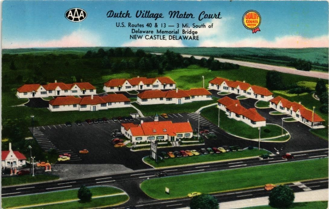 DR JIM STAMPS US POSTCARD DUTCH VILLAGE MOTOR COURT NEW CASTLE DELAWARE